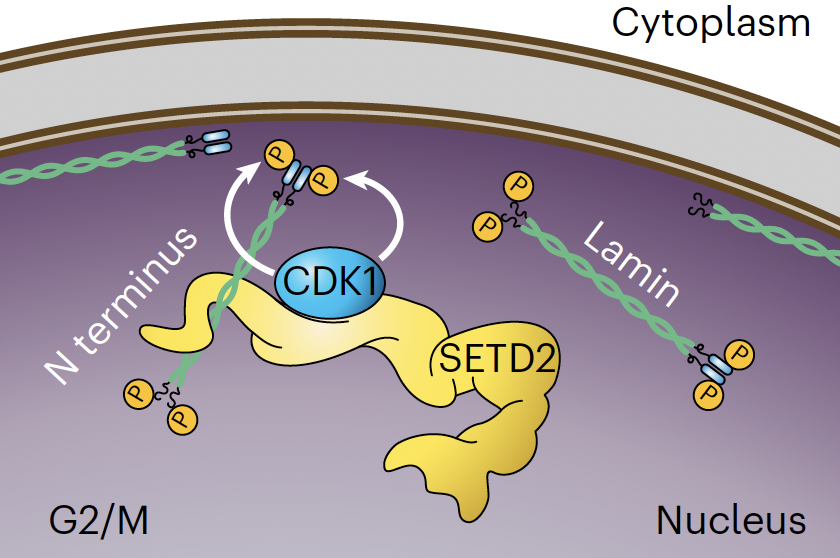 Khan, A., Cheng, Z., Nguyen, P. G., A., Metts, J. M., Collins, L. C., Jain, K., Mills, C. A., lach, L., Li, K., Brademeyer, A. L., Bowman, B. M., Major, B. M., Aube, J. Herring, L. E., Rathmell, W. K., Mason, F. M., Davis, I. J., Zhang Q. & Strahl, B. D., (2025) A SETD2-CDK1-Lamin axis maintains nuclear morphology and genome stability. Nat Cell Biol. 27:1327-1341.